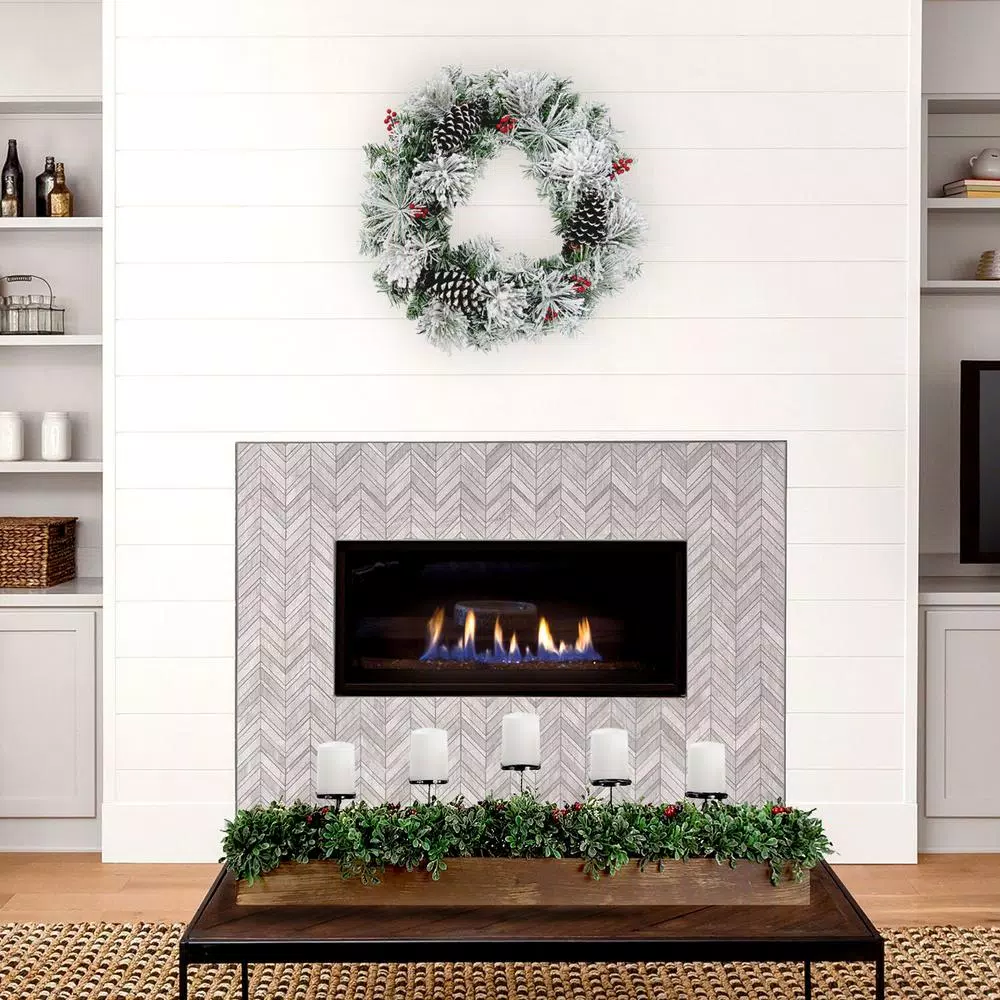 Spruce up your holiday decor with this 5-candle holder centerpiece from Fraser Hill Farm. A rustic wooden box provides the perfect base for the beautiful arrangement, featuring boxwood greenery and red berries. 5 platforms are raised above the wintery display so you can add your favorite shape and scent of candles and change them out as you please. The centerpiece is decked out with realistic-yet-artificial foliage and accented with red berries. With this candle holder at the center of your festive gatherings, you’ll have seasons upon seasons of holiday cheer.