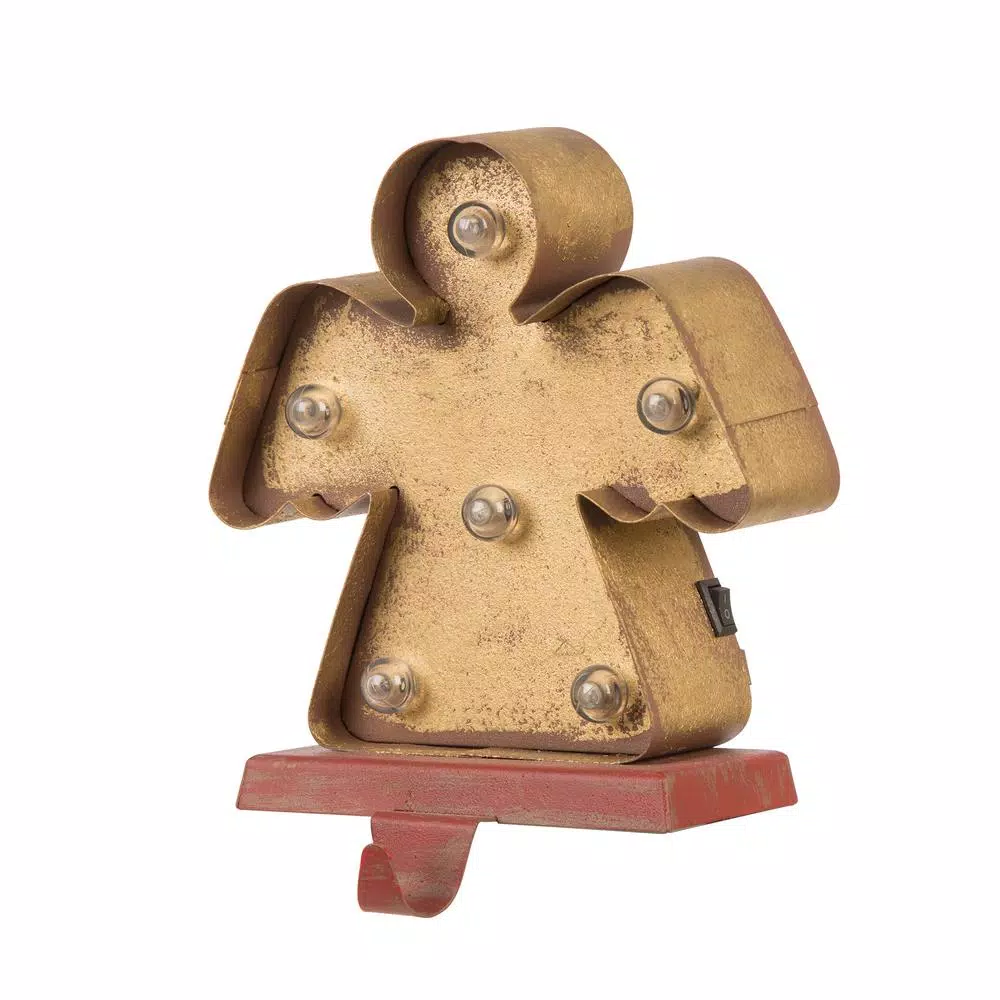 Our personalized stocking holder makes an eye-catching alternative to your mantel or fireplace to display your families Christmas stockings. It features marquee LED lighted angel design equipped with an iron hook on the base. Simply light up the adorable stocking holder with the switch on the side edge, no need to turn on/off on the back. Add some joy to your home decor this holiday season with this festive product.