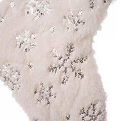 Glitzhome 21 In. H Polyester White Fleece Stocking With Christmas Tree And Snowflake (2-Pack)