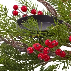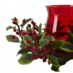 Nearly Natural Poinsettia, Berry And Golden Pine Cone Candelabrum Artificial Arrangement