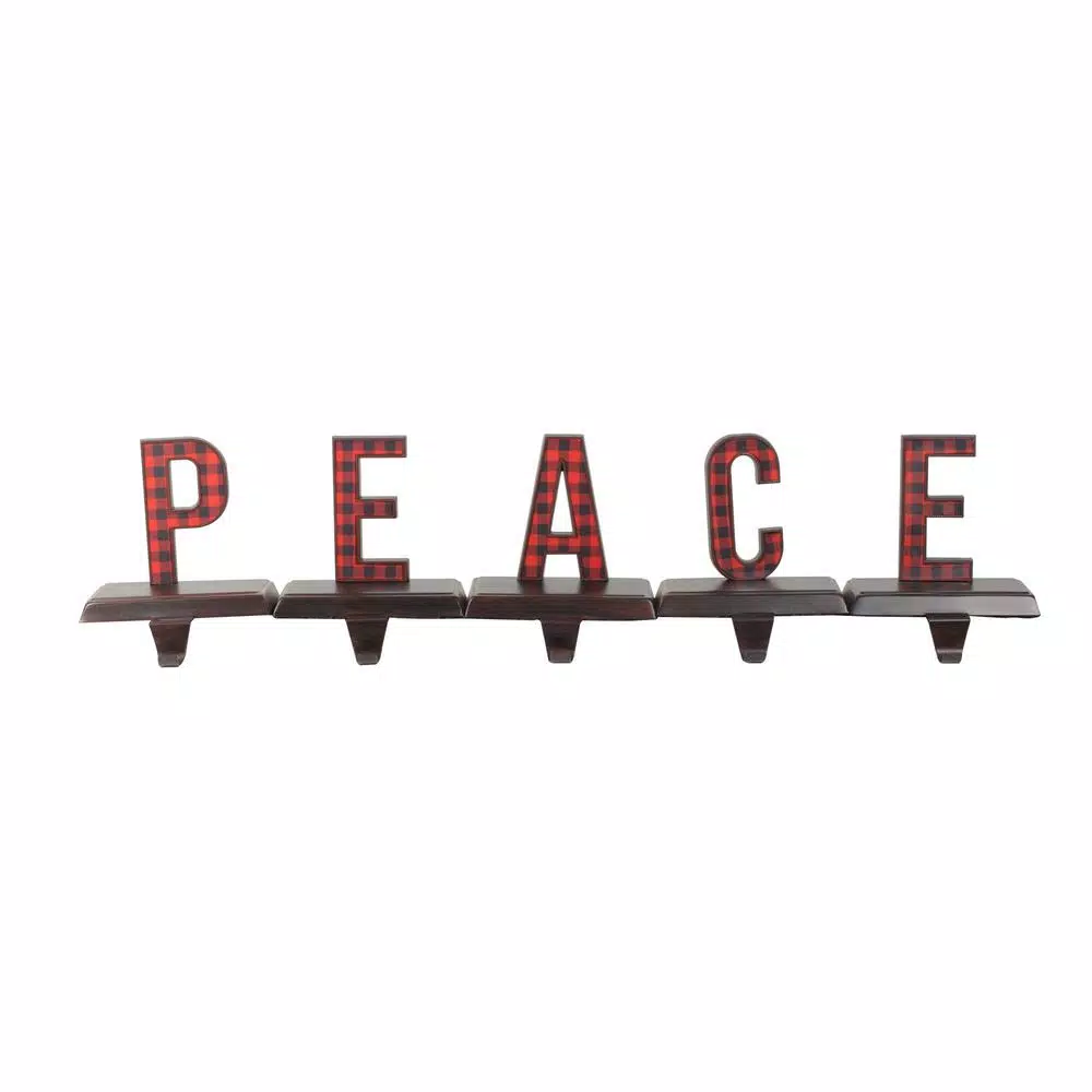 - Black and red buffalo plaid peace Christmas stocking holders