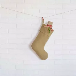 VHC Brands 15 In. 100% Cotton Natural Festive Burlap Farmhouse Christmas Decor Ruffled Stocking