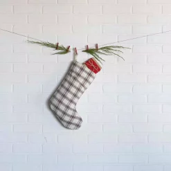 VHC Brands 15 In. 100% Cotton Vintage Stripe Candy Apple Red Farmhouse Christmas Decor Stocking