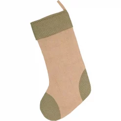 VHC Brands 20 In. Cotton And Jute Green Dolly Star Primitive Christmas Decor Pocket Stocking