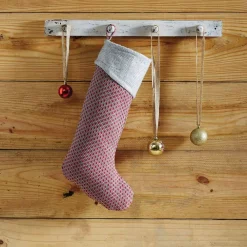 VHC Brands 20 In. Cotton And Jute Red Dolly Star Primitive Christmas Decor Pocket Stocking
