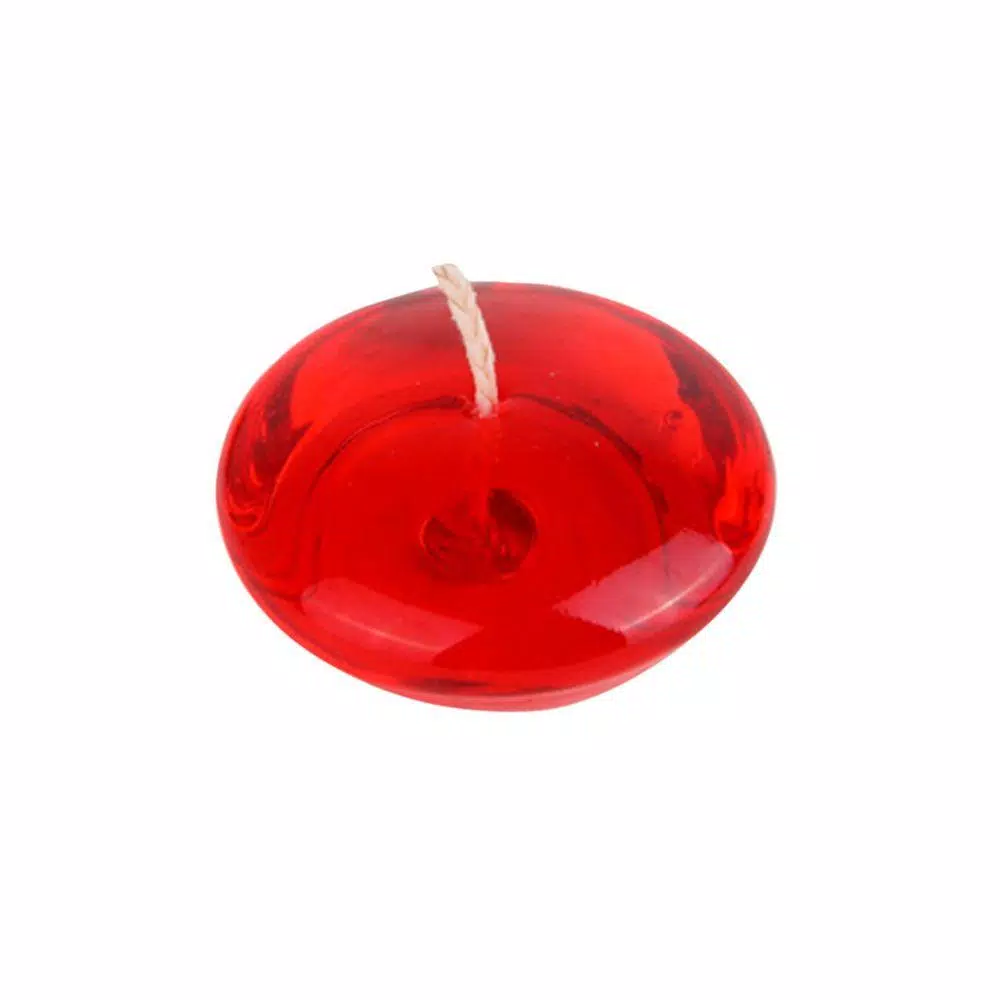 Large round clear red gel floaters are a must for events such as housewarmings and weddings. Illuminate these floaters on waters to maximize the atmosphere. These unscented floating candle discs burn exceptionally long and have solid color all the way through.